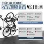 Effortless bike storage starts with the No Lift design, allowing you to roll your bicycle onto its back tire and easily glide it into place. This 2-pack of Swivel Bike Racks is perfect for garage organization, storing bicycles flat against the wall and accommodating tires between 2.0" and 2.8". From carbon frames to e-bikes, these racks keep your bikes ready for adventure. The patent-pending swivel mechanism saves garage space by tilting the bike flat for compact storage and enabling side-by-side mounting without contact. Built from durable, industrial-grade steel, each heavy-duty rack supports up to 70 lbs, ideal for MTBs, e-bikes, and more. A scuff-free design includes a rear tire catch to protect your garage walls from tire marks, ensuring your space stays clean and damage-free. No-Lift Bike Storage: Wall-mounted bike rack garage solution that eliminates heavy lifting. Simply roll your bike onto its rear tire and glide it into place. Ideal for effortless bike storage in garage or shed. 2-Pack Bike Rack Wall Mount: This garage bike rack wall mount stores mountain bikes flat against the wall. Fits bikes with tires 2.0'' to 2.8'' wide, including carbon frames and e-bikes. Perfect bike organizer for garage walls. Heavy-Duty Steel Construction: Built from industrial-grade steel with no plastic parts for durable bike organization. Each bike hanger wall mount supports up to 70 lbs, making it robust enough to store your most valuable bikes, including MTBs, e-bikes, e-mountain bikes, and more. Scuff-Free Wall Protection: Keep walls pristine. This bike rack includes a protective rear tire catch that supports your bike wheels and protects your wall. It serves as a barrier to prevent damage from tire marks, ensuring your space stays clean and damage-free. Patent-Pending Swivel Design: Engineered for ultimate space-saving. With an original handlebar tilt, this wall mount bike rack swivels the entire bike flat for compact storage against the wall. This design also allows for contact-free side-by-side mounting. Built To Last – Backed By Life-Long Support: All our products are designed for durability and reliable performance. Manufacturer support is available when used and maintained as instructed. We stand behind the quality with warranty for life.