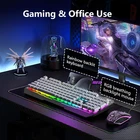 RGB Rainbow Backlit Keyboard: The keyboard is through rainbow backlit keyboard and RGB breathable backlit mouse, you can customize the keyboard backlight/brightness/speed. The glitter keyboard offers 3 illumination modes and 3 brightness levels to choose from. FN+PgUp/PgDn: Backlight brightness and speed adjustment; Fn+1: Adjust the backlight mode (Constant Light/Breathing/Heartbeat), can be turned off if not needed Quiet & Comfotable Typing: The ergonomic design of this wired keyboard and mouse combo releases your hands from fatigue. 2.0mm keystroke offers fast trigger efficiency and rebound speed, which will bring you a fabulous typing feeling typing experience. All keys offer a soft touch, without loud clicking noises, allowing for late-night typing or gaming without disturbing others Multimedia & Anti-Ghosting: Elevate your gaming with 12 multimedia combination keys on the top of the pc gaming keyboard (FN+F1-F12) + 4 adjustable DPI ( 1200-2400-4800-7200 ) mouse. With 26 keys offering simultaneous operation without conflict, experience a fast response during gaming Premium All-Metal Panel: This light up gaming keyboard features a matte metal panel, enhancing both the overall tactile sensation of the keyboard and its durability. The gaming Keyboard is built to withstand the occasional liquid spill, adding to its longevity and tactile sensation Wide Compatibility: This wired gaming keyboard and mouse combo is your versatile gaming companion. It automatically sleeps after 5 minutes of inactivity, waking up instantly with any keypress. This gaming keyboard and mouse set is compatible with Windows 2000/2003/XP/Vista/Win 7/8/10/Mac/iOS for gaming. Support for PC, Laptop, Google TV, and Smart TV, and Works Well for PS4 / Xbox After-Sales Protection: If you encounter any problems with AULA lighted Keyboard, such as malfunctioning keys or fading keycaps, please reach out to our professional customer service team and we will reply within 24 hours and give you the satisfactory solution Product Description AULA Gaming Keyboard and Mouse Combo The video showcases the product in use. The video guides you through product setup. The video compares multiple products. The video shows the product being unpacked. Unleash the power of our Rainbow RGB Backlit Wired Keyboard and Mouse Combo. Elevate your gaming adventures with 7200 Precision DPI, offering lightning-fast precision. 1 With Keycap Puller 2 Quiet Floating Keys Engineered for Unmatched Spill Resistance and Durability Built to withstand life's little accidents, our spill-resistant and durable keyboard keeps you typing with confidence. 1 Phone Holder 2 Foldable Kickstands 1 RGB Gaming Mouse 2 High-Precision Sensor 1 For Gaming 2 For Working Compare AULA Gaming Keyboard and Mouse Combos Add to Cart Add to Cart Add to Cart Add to Cart Add to Cart Add to Cart Add to Cart Customer Reviews 4.4 out of 5 stars 2,249 4.6 out of 5 stars 35 4.4 out of 5 stars 16 4.1 out of 5 stars 75 4.3 out of 5 stars 22 4.0 out of 5 stars 10 4.3 out of 5 stars 5 Price $34.99 $ 34 . 99 $83.98 $ 83 . 98 $62.98 $ 62 . 98 $49.99 $ 49 . 99 $39.99 $ 39 . 99 $34.99 $ 34 . 99 $32.99 $ 32 . 99 Combo Type 2 in 1 3 Modes Connection keyboard 3 Modes Connection keyboard Keyboard Keyboard Keyboard Keyboard Keyboard ✔ ✔ ✔ ✔ ✔ ✔ ✔ Mouse ✔ ✘ ✘ ✘ ✘ ✘ ✘ Colour Option Black Gradient Purple Gradient Black Purple Silver-Black Silver-Black Silver-Black Connection Methods Wired BT/2.4G Wireless/Wired BT/2.4G Wireless/Wired Wired Wired Wired Wired Keyboard Type Membrane Keyboard Mechanical Keyboard Mechanical Keyboard Mechanical Keyboard Mechanical Keyboard Mechanical Keyboard Mechanical Keyboard Switches Membrane Reaper Switches Reaper Switches Red Switches Red Switches Red Switches Red Switches Size Full Size (104 Keys) 95% 99Keys TKL 87 Keys Full Size (108 Keys) Full Size (104 Keys) Full Size (104 Keys) TKL 87 Keys Backlight Rainbow RGB RGB Rainbow Rainbow Rainbow Rainbow Battery Indicator ✔ ✔ ✔ ✔ ✔ ✔ ✔ Power On/Off Switch ✔ ✔ ✔ ✔ ✔ ✔ ✔