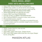 Tencel Modal Jersey Sheet Sets and Pillow Cases By MAISON ATLAS · Made of 100% TENCEL MODAL fiber of Lenzing Austria. · SOFTEST sheets available, true silk feel with Eco Soft technology. · FEEL cool and fresh in summer, warm and cozy in winter with this BREATHABLE, TEMPERATURE REGULATING FABRIC. · WICKS MOISTURE 50% more effectively than cotton, keeping you comfortable as you sleep. · Packed in FREE Tencel Modal STORAGE BAG. · Stunningly soft fibers are PERFECT FOR SENSITIVE SKIN · Fabric is perfectly SMOOTH compared to cotton, wool, and linen. · All around elastic ensures a secure fit · A LEADER IN SUSTAINABILITY, Tencel fibers are produced from pure beech and eucalyptus pulp from sustainably managed sources, committed to preserving the earth. · GENUINE ARTICLE for a fraction of the retail store price. Package contents · Twin / Twin XL SHEET SET includes: 1 flat sheet, 1 fitted sheet, and 1 pillowcase , · Full / Queen / King / California King SHEET SET includes 1 flat sheet, 1 fitted sheet, and 2 pillowcases . · Packed in FREE Tencel Modal STORAGE BAG. Additional matching Tencel Modal Pillowcases available in a different listing. Buy more, save more. Pa Colors conn · WHITE: Timeless classic for a clean airy look · IVORY: Timeless classic · LIGHT GRAY: Lightest shade of gray - Designer Favorite · MISTY LIGHT BLUE: Lightest shade of blue with a hint of gray. Designer Favorite. Calming effect. “A Thing of Beauty Is a Joy Forever.” conn · If you enjoy high quality, ultra-soft textiles also check our MAISON ATLAS Premium VELVET Collections (Charlotte, Jewel, and Solid.) · At Maison Atlas, we are totally committed to keeping you happy about our products and our service. Once you have had the pleasure of owning and using our products, we hope that you will purchase Maison Atlas home products for life.