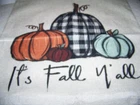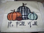 New without tags - Bought this Throw Pillow Cover and never used it so am selling it. Been in storage for a while. Pumpkins designs with the saying "It's Fall Y'all" so great for Fall/Autumn, Halloween and Thanksgiving. Measures 17 1/2 x 17 1/2 inches in size. Off white color with different colored and designed Pumpkins. Soooooo Cute. New without tags. Please see all photos for style and condition. (NOTE........Please message any questions for all sales are final - Thanks!)
