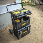 The TOUGHSYSTEM Tote is part of the Tough System line and is made with a durable, thick structural foam wall giving it a robust structure. It provides a large and accessible open interior for bulk storage. This Tote fits into the DWST08210 metal carrier with adjustable foldable brackets which allows for tailored configuration. The TOUGHSYSTEM Tote DS280 can also be stacked with other TOUGHSYSTEM tool boxes using the side stacking latches.