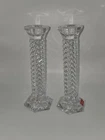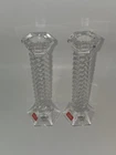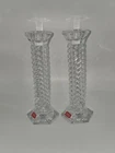 The TOWLE Leaded Crystal Candlesticks Holder Set features a pair of medium-sized candle holders, each measuring 8 inches in length. Made of clear crystal with intricate crystal detailing, these candlesticks are original pieces from Austria. They are suitable for all occasions and come in a set of two. The candle holders do not appear to be engraved and would make a beautiful addition to any decor with their elegant design and craftsmanship.