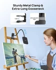 TROND LED Desk Lamp with Clamp, 1000LM Super Bright 3-Level Dimmable Desk Light 6000K Daylight, Extra-Long Flexible Gooseneck Clip on Light, Eye-Care Clamp Lamp for Painting, Workbench,Reading, Sewing Product Details Style: Eye-Care Daylight Clamp Lamp Brand: TROND MPN: Halo 9W-C EAN: 6950639112473 UPC: Does not apply Finish Type: Matte Base Material: Metal Bulb Base: E27 Product Dimensions: 1.6"D x 9.9"W x 9.9"H Item Weight: 0.9 Pounds Is Discontinued By Manufacturer : No Product Dimensions : 9.9 x 1.65 x 9.9 inches; 14.4 ounces Item model number : Halo 9W-C Date First Available : May 9, 2016 Manufacturer : TROND Country of Origin : China Customer Reviews: 4.5 4.5 out of 5 stars 5,986 ratings Finish Type: Matte Base Material: Metal Bulb Base: E27 Product Dimensions: 1.6"D x 9.9"W x 9.9"H Item Weight: 0.9 Pounds Lamp Type: Desk Lamp Shade Color: Black Shade Material: Plastic Switch Type: Touch Style: Eye-Care Daylight Clamp Lamp Brand: TROND Color: Eye-Care Daylight Clamp Lamp Special Feature: Enhanced Brightness: premium diffusion film invented by SKC Haas from South Korea, Infinite Flexibility: strong aluminum clamp opens up to 1.65′′ width & durable gooseneck with the extra length of 50cm/19.7′′, 3-Level Touchable Dimmer with Memory Function, Eye-Care Daylight (5800K ~ 6000K): flicker-free, no ghosting & anti-glare Light Source Type: LED Material: Metal Room Type: Painting Room, Studio, Bedroom, Living Room, Dining Room, Kitchen, Kids, Nursery, Bathroom, Home Office Recommended Uses For Product: Reading, Sewing, Crafts, Painting Power Source: Corded Electric Shape: Linear Controller Type: Push Button Number of Light Sources: 85 Connectivity Technology: wired Included Components: LED Clamp Lamp*1, Adapter*1, Welcome Guide*1 Age Range (Description): Youth Adult Man Woman Boy Girl Elder Kid Is Waterproof: False Mounting Type: Clip-on, Clip, Clamp, Desktop, Tabletop Wattage: 9 watts Number of Items: 1 Lighting Method: Adjustable Control Method: Touch Indoor/Outdoor Usage: Indoor Specific Uses For Product: General purpose Water Resistance Level: Not Water Resistant Installation Type: Clip-on, Clamp, Tabletop, Countertop Number of Pieces: 1 Voltage: 12 Volts Base Diameter: 4.33 Inches Brightness: 1000 Lumen Is Cordless?: No Size: Clamp Lamp Manufacturer: TROND Part Number: Halo 9W-C Item Weight: 14.4 ounces Country of Origin: China Item model number: Halo 9W-C Is Discontinued By Manufacturer: No Finish types: Matte Maximum Compatible Wattage: 9 Watts Special Features: Enhanced Brightness: premium diffusion film invented by SKC Haas from South Korea, Infinite Flexibility: strong aluminum clamp opens up to 1.65′′ width & durable gooseneck with the extra length of 50cm/19.7′′, 3-Level Touchable Dimmer with Memory Function, Eye-Care Daylight (5800K ~ 6000K): flicker-free, no ghosting & anti-glare Batteries Included?: No Batteries Required?: No Certification: UL Wattage: 9 Watts Bulb Features: Dimmable Color Temperature: 6000 Kelvin Color Rendering Index (CRI): 85.00 Average Life: 40000 Hours Date First Available: May 9, 2016 Natural Daylight and Eye Protection: TROND desk light provides 5800 K-6000 K natural light, no glare, no flickering, and without ghosting. The CRI of the clamp lamp is 85, CRI is the color rendering index, and the larger the CRI value, the better the color rendering of the light source. The soft, non-glare desk lamp is perfect for when you're working, reading, painting, or sewing 3-Level Dimmer Table Lamp: This task lamp has 3 brightness levels to choose from, providing 600-1000 lumens of light brightness for working, studying, reading, and relaxing. TROND LED desk lamp is ideal for different occasions: Office, writing, crafting, painting, sewing, knitting, crocheting, jigsaw, tattooing, putting on makeup or shaving, etc Strong Metal Clamp and Flexible Gooseneck: This desk lamp is with Strong aluminum clamp that opens up to 1.65 width (optimal 0.6-1.38 width) and can be used perfectly with headboard, workbench, computer desk, easel, drafting table, or sewing table. The extra-long flexible gooseneck (50 cm/19.7 if fully extended) of bright clamp light allows you to adjust your led clamp desk lamp with ease and to direct the light wherever you want Sensitive Touch Control and Memory Function: By touching the power icon on the lamp head, you can turn on/off the office lamp and adjust 3 different levels of brightness to cater to your various lighting needs. Important tip: You just need to press and hold the power on the light head for 2 seconds to turn off the light, no need to cycle through the brightness levels. The memory function remembers the brightness setting from the last time you used it Long Lifespan and Energy Saving: Up to 40000 hrs lifespan (22 years if used 5 hours per day), 40 times longer than a typical incandescent light. This desk lamp consumes 70%-80% less power than traditional incandescent lamps and does not contain mercury or lead, no UV or IR radiation. What you get: TROND Halo 9W-C led clamp desk lamp, 6 ft UL-Certified detachable power adapter, welcome guide