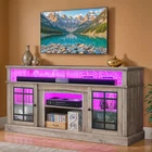 TV Stand Console Cabinet for 32 to 70 In With Open Shelves LED Lights Glass Door Product Description NOTE: Professional Installation would be Highly Recommended. Description: 1. Color: Brown 2. Material: MDF/Chipboard, Particle Board, Wood Composite 3. Special Design: RGB LED Light, Adjustable Shelf, Cord Management, Thickened Top Table, Sturdy Material, Open Shelves, Open Storage Cabinet, With Glass Doors, With Soundbar shelf, With Open Shelves, With Open Storage, Sturdy Materials, Easy to Clean. 4. Room Type: Living Room, Dining Room, Bedroom. Features: 1. Tempered Glass Door: This media console features an open top shelf for easy access to your favorite devices, while the 2 glass side cabinets with adjustable and fixed shelves offer flexible storage for a variety of items. From coffee makers and microwaves to DVDs and game consoles, this design keeps everything organized and clutter-free, making it a perfect addition to your living space. 2. Multicolor RGB Lights: This stylish buffet cabinet features built-in LED lighting with 16 vibrant RGB colors. Choose your perfect shade or dynamic mode to create an artistic touch in your living room or kitchen. The adjustable lighting system lets you set the mood for any occasion, from a soft glow for intimate gatherings to a vibrant display for entertaining. 3. Sturdy Material: This farmhouse coffee bar cabinet boasts a high-quality, engineered wood construction for lasting durability. The spacious top surface can hold up to 360lbs, making it ideal for your coffee maker, espresso machine, TV, or even a toaster oven. Enjoy a functional and stylish centerpiece that's perfect for your coffee cravings and entertaining needs. 4. Wood Grain Finish: This TV Stand boasts a classic washed grey woodgrain finish with a thick top for an authentic retro touch. Sleek window glass doors with pulls complete the look, offering a glimpse of your coffee essentials while maintaining a clean, modern aesthetic. This cabinet infuses your space with a touch of sophistication that never goes out of style. Dimensions: 1. Product Dimensions: 65" L x 15.7" W x 32" H 2. Maximum Weight Capacity: 360 lbs 3. Item Weight: 115.3 lbs Package Included: 1. TV Stand 2. Instruction Manual Book Shipping 1. Normally the item will be dipatched within 1 business day if payment is cleared before 12pm PST. 2. Please verify the correct shipping address in your PayPal account before making the payment. We only dispatch the item to the address that is sent to us at the time of checkout. 3. We don't ship to Hawaii, Alaska, Puerto Rico, APO/FPO/PO Boxes. 4. We don't provide local pick-up service. 5. Normally we will use USPS, UPS, FedEx & LTL to dispatch items. Payment 1. We accept PayPal and credit card. 2. We will ship to the confirmed Paypal shipping address that is provided with the payment only. Return 1. 30 days Money Back Guarantee. 2. Please contact our customer service to receive a RMA form first if want to return the item. 3. All returned items MUST in new condition with the original package. Contact If has any problem, please contact us by sending an ebay message. Our customer service will resolve the problem as soon as possible.