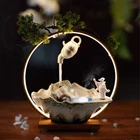 Specifications Color: Black, Wood Color Shape: Round Style: Antique Mount Type: Tabletop Control Type: Manual Assembly Required: Yes Indoor/Outdoor Usage: Indoor Surface Treatment: Glaze Material: Ceramic, Solid Wood, PC, Plastic, Aluminium Ironwork Atomizer Light Color: Red, Orange, Yellow, Green, Blue, Purple Power: 3 W (Pump), 24 W (Atomizer), 13 W ( Lamp Ring ) Light Color: Warm Voltage: 110V Efficiency: E Light Source: LED(Included) Power Source: Corded Electric Plug Type: US Standard Power Cord Length: About 1.2m/3.93ft Illumination Area: 7-10m/22.96-32.8ft Atomized Area: 50cm/19.69in Gross Weight: 3.5kg/7.71lbs Product Size: 40*12*42cm/15.7*4.7*16.5 in Package Size: 42*42*22cm/16.5 *16.5 *8.66in Tabletop Water Fountain, Indoor Waterfall with LED Light Mist Desk Fountain Welcome to my store: Description As life moves at such a fast pace, we often feel tired and anxious and want a piece of peace and comfort. Our tabletop water fountain with an atomizer design and LED light ring can bring you a warm and romantic atmosphere, bringing a sense of peace and warmth to your life. It is a beautiful and generous desktop ornament that adds a little artistic touch to your life. Whether you are at work or leisure, open it, and you can let your mind get soothing and relaxation. Key Features Sturdy and Durable: The product is made of high-quality ceramic, solid wood, PC, plastic, and aluminum ironwork materials, using a glazing process, with uniform and stable color, ensuring safety and durability Relieve Stress : After a long day's work, you can recline in your chair and feel the sound of its crisp running water, surrounded by soft mist, and enjoy a quiet moment alone to let the stress of your day disappear. You can also use it when trying to meditate or practice yoga. Atomizer Design: It comes with an atomizer and the misting effect creates a hazy and romantic atmosphere, adding to the aesthetics of the product whilst also bringing the humidity of the air around you to a healthier level, giving you a comfortable living experience. Stunning LED Visuals: It adopts an energy-saving and environmentally friendly LED light source, with simulated landscape modeling, which not only presents you with a beautiful visual experience but also protects your eyes. Beautifully Decorated: Exquisite pottery, simulated cliff cypress and waterwheel, and lifelike carved bard make this product a well-deserved piece of art deco, like a wonderful landscape painting. Its elegant appearance and suitable size can add color to any tabletop, living room, or bedroom. Auspicious Symbol: In Chinese culture, the continuous flow of water symbolizes rolling wealth, and the bard who is singing to the wine signifies having fun in time and a pleasant life. Therefore, it is especially suitable for placing in homes and offices. You can also give this meaningful product as a gift to your friends, family, and colleagues on birthdays, Christmas, Thanksgiving, or other festivals. Easy to Clean: The product's smooth surface and simple construction make it easy to clean, all you need to do is gently wipe it down with a dry cloth or wet wipe. Protective Packaging: The foam provides comprehensive protection for products to ensure that it is fully delivered to you to the greatest extent possible. Details Solid Base: The large wood base increases the stress area, so it can maintain the stability of the product. Practical Switch: The one-touch switch makes it easy to switch the power on and off with one hand at any time. Uneven Rockery: It is convenient for you to make your arrangement on it, or plant your greenery. Application The illumination area is 22.96-32.8ft and the atomized area is 19.69in. It can be placed as a decorative item in the living room, corridor, entrance, study room, dining room, bookstore, study room, tea break room, office, bedroom, yoga room, meditation room, conference room, and so on. It is also suitable as a beautiful gift for your leaders, colleagues, friends, and relatives. How to Install 1. Insert the lamp ring into the groove of the solid wood base. 2. Place the reservoir smoothly on the solid wood base. 3. Connect the water hose to the outlet of the water dispenser. 4. Connect the other end of the water hose to the pump. 5. Pull the pump power plug out of the water dispenser. 6. Place the atomizer into the spout of the water dispenser. 7. Pull the atomizer power connection port out of the water dispenser. 8. Insert the hanging kettle support into the water dispenser outlet port. 9. Insert the hanging teapot into the acrylic water pipe. 10. Place the white bard ornament on the water runner. 11. Wrap the simulated cliff cypress around the LED light ring 12. Place the inverted incense(not included) on the lamp ring. Specifications Color: Black, Wood Color Shape: Round Style: Antique Mount Type: Tabletop Control Type: Manual Assembly Required: Yes Indoor/Outdoor Usage: Indoor Surface Treatment: Glaze Material: Ceramic, Solid Wood, PC, Plastic, Aluminium Ironwork Atomizer Light Color: Red, Orange, Yellow, Green, Blue, Purple Power: 3 W (Pump), 24 W (Atomizer), 13 W ( Lamp Ring ) Light Color: Warm Voltage: 110V Efficiency: E Light Source: LED(Included) Power Source: Corded Electric Plug Type: US Standard Power Cord Length: About 1.2m/3.93ft Illumination Area: 7-10m/22.96-32.8ft Atomized Area: 50cm/19.69in Gross Weight: 3.5kg/7.71lbs Product Size: 40*12*42cm/15.7*4.7*16.5 in Package Size: 42*42*22cm/16.5 *16.5 *8.66in Package Included 1* Tabletop Water Fountains Other Accessories Required for Installation Notes Please do not switch on the pump without water. When installed, the pump should be placed in water and the water level should exceed the pump. To avoid short-circuiting due to corrosion, please use clean water. Please note that this product does not include fresh greenery or inverted incense. Please do not operate the pump without water. If the amount of water discharged decreases, please promptly check whether th