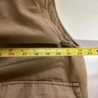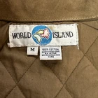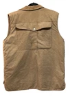 This vintage WORLD ISLAND Tactical Quilted Lined Vest is perfect for hunting, fishing, and other outdoor activities. The vest is made of cotton and has a solid pattern with a brown color that gives it a classic look. It has a relaxed fit and mid-length jacket/coat length that offers comfort and style. The vest features a zip and button closure, making it easy to put on and take off. The quilted outer shell material and cotton lining material provide warmth during colder seasons like winter, fall, and spring. It is suitable for travel and casual occasions, and it is machine washable for easy maintenance. The vest has accents of quilted fabric type and is designed with a Tactical Hunting Fishing Style, making it perfect for those who love fishing, hunting, and sporting activities. Lots of pockets Quilted inner lining Back pocket (large) **. There is a very MINOR SMALL stain on hemline (see photo). Barely noticeable.