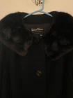 Elevate your wardrobe with the Tailored Woman black wool jacket, a timeless piece that effortlessly combines sophistication with classic style. Featuring a luxurious mink collar that adds a touch of elegance, this jacket is a must-have for the fashion-conscious woman. The long jacket/coat length provides ample coverage, making it an ideal choice for cooler weather.Crafted from high-quality wool, this jacket offers both warmth and comfort. The regular size M ensures a flattering fit for a variety of body types. Additional features include a collared design and distinctive lapel, enhancing the jacket's sleek silhouette. Whether dressed up for a night out or styled casually for daytime wear, this jacket is versatile for any occasion. Vintage from the 80s, great condition. Model is 5’ 4”