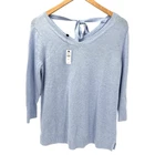 Talbots Sweater Womens Petite Medium Mp Blue Knit V-Neck V-Back Tie Detail 3/4 Sleeves Pullover 100% Pima Cotton Classic Coastal Nautical Preppy NEW $79.50 Brand new with tags, see all pictures for views. * Pit to pit: 19" * Shoulder to hem: 27" Ships out same day or next open postal day. Thank you for your purchase, we appreciate you!