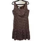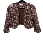 Talbots Women’s 16 Brown Polka Dot Peplum Dress Shrug Set 50s Pinup Retro Modest Good pre-owned condition, pale pink marks on one shoulder of dress. Approximate flat lay measurements: Dress length-41” Bust-19.5” Hip-18.5” Shrug length-17” Bust-18” Sleeve-18” This gorgeous Talbots dress is a must-have for any fashion-conscious woman. The brown polka dot pattern adds a touch of retro charm, while the 3/4 raglan sleeves and peplum detail give it a modern twist. The round neckline and zip closure make it easy to wear, and the knee-length fit and flare style is perfect for any occasion, from casual outings to formal events. Made from 100% cotton knit fabric, this dress is both comfortable and stylish. It comes in size 16 and is suitable for women of all ages. With its versatile style and high-quality construction, this Talbots dress is sure to become a favorite in your wardrobe. Whether you're dressing up for a wedding or holy communion, or keeping it casual for a party or cocktail event, this dress has got you covered. So why wait? Add this stunning piece to your collection today!