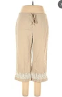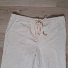 Used in Great condition, please see pictures for details and measurements. Elevate your summer wardrobe with these Talbots women's linen blend cropped pants in a beautiful beige color. These pants feature a straight leg and are embroidered with subtle accents, making them perfect for any occasion, whether it's a party, casual outing, or travel. The pants have a comfortable fit with a mid-rise and a drawstring closure that adds a touch of versatility to the garment. Crafted from a linen-cotton blend, these pants are breathable and machine washable, making them easy to care for. The pockets on the front and flat front style add functionality and a classic touch. These pants are perfect for the summer, fall, and spring seasons and are a must-have for any fashion-forward woman's wardrobe.