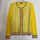 Talbots Yellow Full Button Front Cardigan Mixed Print/Fabric Crew Neck Size M