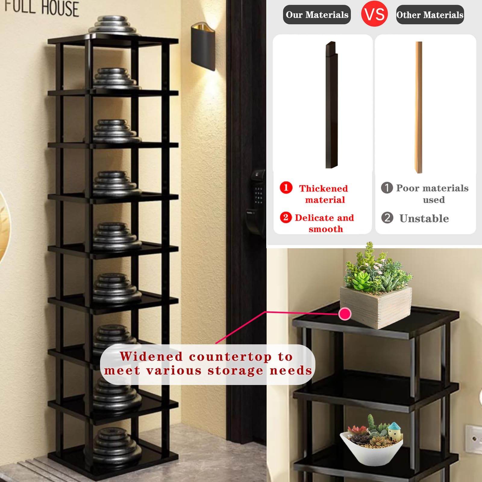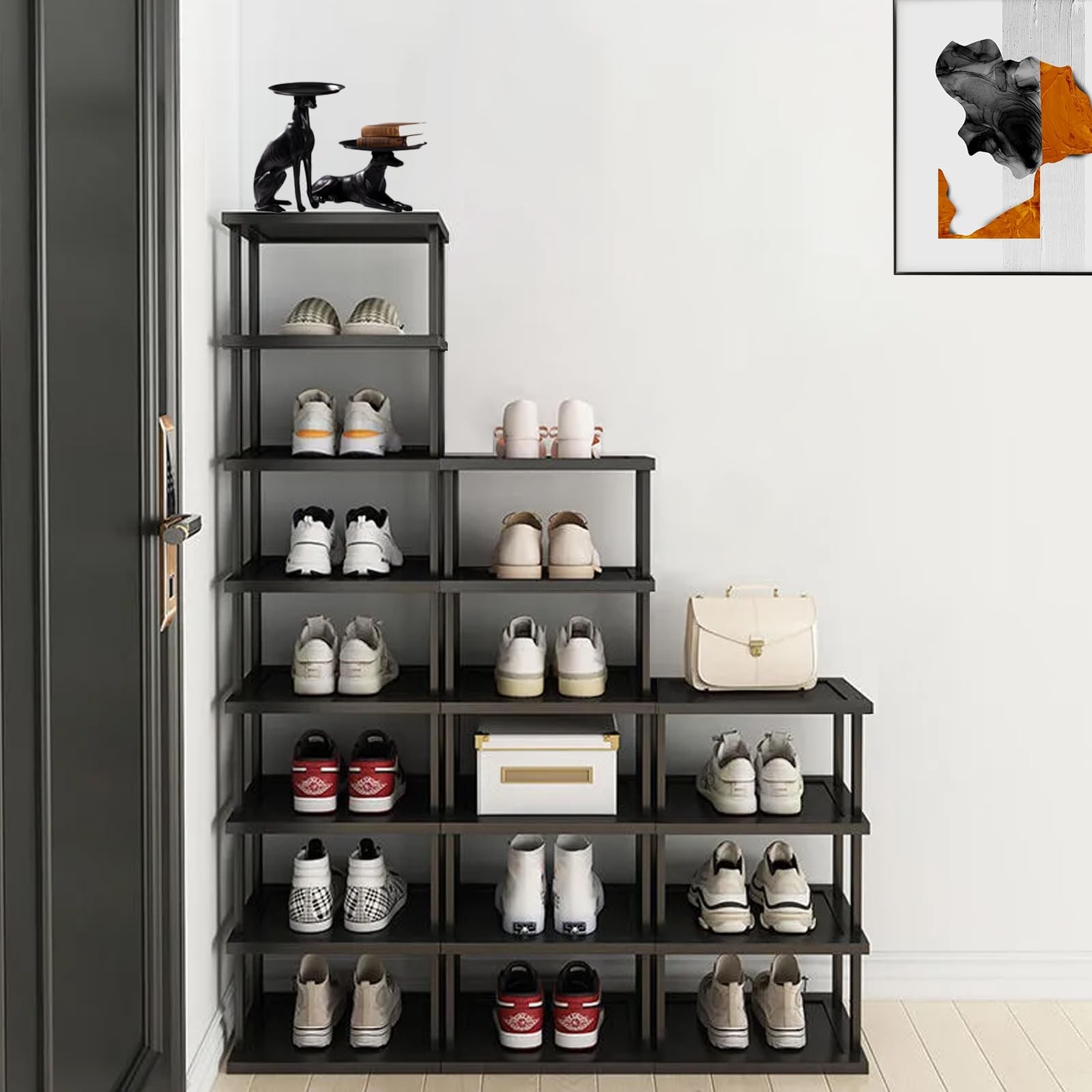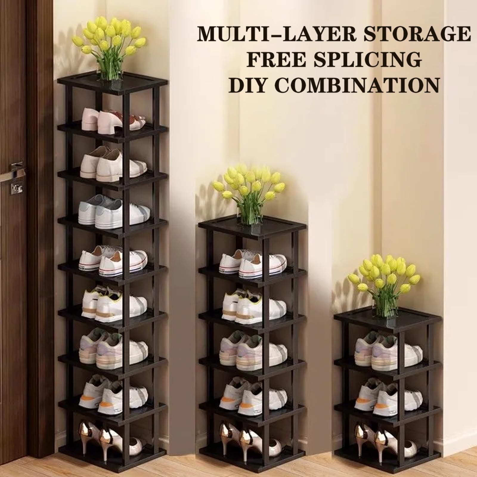 shoe rack The square and luxurious brown design is elegant and understated, yet does not compromise the noble texture release. It has four points of force to maintain even force, high-temperature pressing plate, easy to clean, open multi-layer design, easy to take, and can be used as a flower rack/bookshelf to meet various shoe storage needs, giving you a neat home ☘✔️1.Shoe rack for closet is the desired destination for every pair of shoes, selecting high-quality 5-year alpine bamboo with a natural and fresh taste. The material is more durable and durable than ordinary ones, sturdy and not easy to crack, deform, and perform better, achieving meticulously crafted shoe racks ☘✔️2.Shoe organizer for entryway,upgrades widens and thickens to create a groove flat design, deepening storage space. Even large-sized shoes can be easily stored, with thick materials and meticulous craftsmanship, providing stronger load-bearing storage. Thoughtful details provide you with warm care, meticulous edge sealing, smooth and delicate touch, without curling or scratching hands, easy to clean, and enjoy a comfortable life. ☘✔️3.Tall Narrow shoe rack,The square and luxurious brown design is elegant and understated, yet does not compromise the noble texture release. It has four points of force to maintain even force, high-temperature pressing plate, easy to clean, open multi-layer design, easy to take, and can be used as a flower rack/bookshelf to meet various shoe storage needs, giving you a neat home ☘✔️4.Shoe rack for front door entrance, can be freely combined and stored, with a compact design that can be used in multiple scenarios. It is widely used in your entrance, doorway, closet, shoe cabinet, under the bed, wardrobe, living room, etc., matching your different furniture life. Simplify complex life ☘✔️5.The simple modularization of the space saving shoe rack, free DIY splicing, easy to install structure, time-saving and labor-saving, and more considerate. Even the little fairy at home can quickly install it!