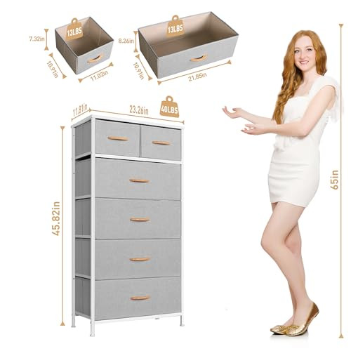Return Policy Fast Delivery Trusted seller Tall Dresser for Bedroom, Vertical Storage Organizer Tower with 6 Drawers, Chest of Drawers with Fabric Bins, Steel Frame, Wood Top for Bedroom, Closet, Entryway- Light Grey Product Description ✔【Spacious & Organized】: With a size of 23.62"W x 11.81"D x 45.98"H, our tall dresser has four large and two small drawers, offering ample storage without occupying much floor space. The sturdy wood top provides a surface for decor, books, or lamps. Ideal for tidying up your clothes – each large drawer can accommodate 6 pants or 20 T-shirts, and the smaller drawers are perfect for socks. ✔【Sturdy yet Lightweight】: Crafted with a robust steel frame, waterproof wooden top and reinforced by X-shaped lacing bars, our dresser offers stability and longevity. It also features four adjustable plastic feet to protect your floor and balance the unit on uneven surfaces. ✔【Safe & Versatile】: Made with breathable, non-toxic non-woven fabric, our dresser is suitable for all ages. Its vertical design makes it versatile enough to fit in various rooms - be it your bedroom, living room, hallway, closet, or entryway. Wooden handles affixed to the MDF fronts ensure durability and ease of use even when fully loaded. ✔【Perfect Dimensions】: Our storage tower measures 23.62" L x 11.81" W x 45.98" H. Large drawers measure 21.85’’ L x 10.91’’ W x 8.27’’ H, while the small drawers measure 11.02’’ L x 10.91’’ W x 7.32’’ H. ✔【Hassle-Free Assembly & Superior Service】: All necessary tools and accessories are included for quick and easy assembly, estimated to take around 20 minutes. If you encounter any issues or have any questions, don't hesitate to contact us. Your satisfaction and happiness is our top priority. Shipping Returns Payment Shipping Shipping is FREE to all addresses other than APO/PO boxes in the lower 48 states. All our stock ships from US-based warehouses. Shipped via USPS or UPS (depending on location and package weight) Unless stated otherwise, all orders will ship within 24-72 hours of your payment being processed. Check our feedback to see the great reviews of FAST shipping we offer. Returns Seller does not accept returns Payment We currently accept payment via eBay managed payments only. Once payment is cleared, we will dispatch your shipment within 1-3 business days. Please refer to the "Shipping" tab for more information regarding shipping speed to your destination.