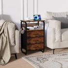 $ 37.2Wooden Nightstand with Lock Drawers and USB Charging Bedside Table