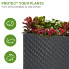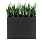 Featuring a long bed space, the impressive rattan-like appearance of this modern planter gives you plenty of space to create the visuals you've dreamed of. It looks with natural, handcrafted warmth. Break it down for easy storage. Ideal for planting flowers, plants, vegetables, or herbs, this planter is built to last and can be used at entrances, on walkways, on decks and patios, pool areas, and in a range of settings from fine homes to upscale commercial settings as a space divider/barrier. Rattan Design: Featuring a long bed space, the impressive rattan-like appearance of this modern planter gives you plenty of space to create the visuals you've dreamed of. It looks with natural, handcrafted warmth. Break it down for easy storage. Removable Liner: Each wicker planter comes with a nonwoven fabric liner (measures 31 x 10 x 10 inch) that separates wicker from the soil. Keep planter in excellent condition to prevent weeds and other invasive species from interfering with plant growth. Dimension: With a 32’’ L x 11’’ W x 24’’ H tall square planter that holds up to 2 cubic feet of soil, the planter box provides ample breathing and growing space for your vegetables and plants. Available in flat packaging, easy to assemble and with detailed instructions. Durable Planter: The tall barrier planter is constructed of high-quality metal with all the handwoven charm of PE rattan, making it light-weight yet sturdy and durable. It is rust- and weather-resistant, so you can keep it out in your yard. Widely Application: Ideal for planting flowers, plants, vegetables, or herbs, this planter is built to last and can be used at entrances, on walkways, on decks and patios, pool areas, and in a range of settings from fine homes to upscale commercial settings as a space divider/barrier.