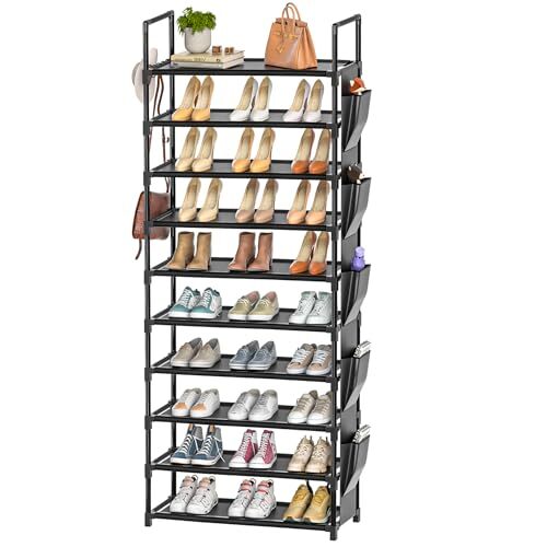 Return Policy Fast Delivery Trusted seller Tall Shoe Rack 10 Tier Shoe Organizer Racks for Closet Shoes Rack, Storage Metal Shoe Shelf with 5Hooks and Pocket,Sturdy Shoe Stand Tower Rack for Shoes Product Description Space saving & large capacity: This narrow tall shoe rack with 5 hooks and side pocket, 23.6x11.8x68.5 inches,compact yet capacious, large capacity comfortably hold 10 to 15 pairs of shoes but takes up the floor space of just one. Narrow and tall shoe stand, ideal for small spaces and large storage capacity, ideal storage solution for any space,closets, entryways, dorms, , hallways, corners, garages, etc. Practicality: The height between shelves is about 6.69inches, suit for different footwear types, sneakers, sandals, slippers, flip-flops; high heels; short boots, toddler shoes. A chaotic and cluttered shoes and space become an eyesore influencing your mood without proper shoe rack organizer. This functional shoe shelves is an excellent way to organize room and keeping footwear shape. Make every pairs have a separate home, in sight, access easily. Beautiful ultra-minimalist appearance: This black shoe rack is built of smooth powder-coated black iron pipes and high-quality plastic joints, perfect combo of durability and pretty, not only help declutter but also enhance the aesthetics of your space; Minimalist style blending into the background, in any room as as a sight.Classic visually suits your family’s taste. Waterproof and durable: Non woven metal shoe rack is easy to clean even if the wet shoes will not sock the fabric. Featuring with high load capacity and superbly constructed, thicken 0.23mm pipes sturdier and stiffer than others, prevents rust. Fabric layers prevent items from falling sturdy entryway shoe storage organizer prolongs the life service. Versatility: Except for shoes, you can use this free standing shoe racks to organize , socks, bags, hats, scarves, toys, crafts, sheets, towels, yarns, etc. Another bonus is 5 hooks for umbrellas, keys, belts, coats, hats, or other accessories, hanging any tier or individually usage; very good additional storage options.Your daily demands will be met with this multipurpose shoe tower. Anyw: This shoe organizer rack can be placed almost anyw in your home as a storage piece, shoe rack for closet, shoe rack for entryway, garage, apartment, dorm, mudroom, living room, front door, hallway, dressing room, area that accumulates excess shoes, or any awkward corner in home that's hard to fill. This is a Smart Storage Solutions of finding the correct item. Detachable and stackable and lightweight: Allows to set up different heights to optimizing space utilization.10 tier shoe rack each tier is detachable so that you can shape it however you like to fit your needs. Tall vertical shoe rack multi layer shoe rack or many low closet shoe organizer. It's anything but bulky, lighter and more portable, easy to move around. Shipping Returns Payment Shipping Shipping is FREE to all addresses other than APO/PO boxes in the lower 48 states. All our stock ships from US-based warehouses. Shipped via USPS or UPS (depending on location and package weight) Unless stated otherwise, all orders will ship within 24-72 hours of your payment being processed. Check our feedback to see the great reviews of FAST shipping we offer. Returns Seller does not accept returns Payment We currently accept payment via eBay managed payments only. Once payment is cleared, we will dispatch your shipment within 1-3 business days. Please refer to the "Shipping" tab for more information regarding shipping speed to your destination.
