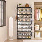 Space saving & large capacity: This narrow tall shoe rack with 5 hooks and side pocket, 23.6x11.8x68.5 inches,compact yet capacious, large capacity comfortably hold 10 to 15 pairs of shoes but takes up the floor space of just one. Narrow and tall shoe stand, ideal for small spaces and large storage capacity, ideal storage solution for any space,closets, entryways, dorms, , hallways, corners, garages, etc. Practicality: The height between shelves is about 6.69inches, suit for different footwear types, sneakers, sandals, slippers, flip-flops; high heels; short boots, toddler shoes. A chaotic and cluttered shoes and space become an eyesore influencing your mood without proper shoe rack organizer. This functional shoe shelves is an excellent way to organize room and keeping footwear shape. Make every pairs have a separate home, in sight, access easily. Beautiful ultra-minimalist appearance: This black shoe rack is built of smooth powder-coated black iron pipes and high-quality plastic joints, perfect combo of durability and pretty, not only help declutter but also enhance the aesthetics of your space; Minimalist style blending into the background, in any room as as a sight.Classic visually suits your family’s taste. Waterproof and durable: Non woven metal shoe rack is easy to clean even if the wet shoes will not sock the fabric. Featuring with high load capacity and superbly constructed, thicken 0.23mm pipes sturdier and stiffer than others, prevents rust. Fabric layers prevent items from falling sturdy entryway shoe storage organizer prolongs the life service. Versatility: Except for shoes, you can use this free standing shoe racks to organize , socks, bags, hats, scarves, toys, crafts, sheets, towels, yarns, etc. Another bonus is 5 hooks for umbrellas, keys, belts, coats, hats, or other accessories, hanging any tier or individually usage; very good additional storage options.Your daily demands will be met with this multipurpose shoe tower. Anywhere: This shoe organizer rack can be placed almost anywhere in your home as a furniture piece, shoe rack for closet, shoe rack for entryway, bedroom, garage, apartment, dorm, kids room, mudroom, living room, front door, hallway, dressing room, area that accumulates excess shoes, or any awkward corner in home that's hard to fill. This is a Smart Storage Solutions of finding the correct item. Detachable and stackable and lightweight: Allows to set up different heights to optimizing space utilization.10 tier shoe rack each tier is detachable so that you can shape it however you like to fit your needs. Tall vertical shoe rack multi layer shoe rack or many low closet shoe organizer. It's anything but bulky, lighter and more portable, easy to move around. Ease of assembly: Very easy to install, just need a few minutes, once finish you will like this vertical shoe rack. A disposable hammer help make narrow shoe rack structure steady. Due to thermal expansion and contraction, when weather cold, soak joints into the warm water for few minutes and will be better for assembling. Please avoid exposing under sun and rain. Package and service: All the parts are packed after strictly checking, no fear of missing and defective parts. During installation and usage, any question please don't hesitate to contact us, we have a professional team to solve your problems,always here for you. Over time, you often arrange your space, it may be difficult to find an efficient way to clean it. So, starting with shoes! This functional and cheap shoe rack tall helps everyday easier.