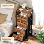 Store New Arrivals Add to Favorite View Feedback Contact Dresser for Bedroom, Tall Nightstand, Vertical Chest with Wood Top, Charging Station, LED Lights, 5 Fabric Bins, Bedside Table with Shelf, Furniture for Entryway (5 Drawer, Rustic Brown) Description Age Range Description Adult Unextended Seating Capacity 1 Number of Items 1 Top Material Type Wood Shape Rectangular Material Type Metal Warranty Type Limited Is Stain Resistant No Model Number HK-DS-007-CL-5D-1-RB Minimum Required Door Width 20 Inches Finish Types Powder Coated Frame Material Type Wood Unit Count 1.0 Count Table Design Nightstand Is Customizable? No Tilting No Shape Rectangular Maximum Weight Recommendation 66 Pounds Extended Length 15.7 Inches Tools Recommended For Assembly Screw Driver Included Components Installation Tool Style 5 Drawers Is the item resizable? No Item Weight 16.09 Pounds Size 5 Drawer Top Color Light Brown Number of Drawers 5 Is Foldable No Item Height 38.58 inches Color Rustic Brown Item Dimensions D x W x H 11.81"D x 15.74"W x 38.58"H Furniture Finish Grey Indoor Outdoor Usage Indoor Handle Material Wood Base Type Leg Style Name 5 Drawers Item Weight 1609 Pounds Frame Material Wood Product Dimensions 11.81"D x 15.74"W x 38.58"H Product Care Instructions Wipe with Dry Cloth Top Material Type Wood 【Smart RGB LED】The storage organizer unit is equipped with RGB light strip, which can be controlled by button or mobile app. There are more than 60,000 colors of LED lights to choose from. There are also modes such as Style Mode, Music Mode, Microphone Mode and Timer Function for you to explore! You can freely set the brightness, color, mode that best suits your mood and environment, making the led dresser a great addition to your bedroom. 【Security Upgrade Charging Station】The tall dresser has 2 outlets and 2 USB ports which can totally charge your lamps, phones, and iPads at the same time. Its more humanized design of outlets can also avoid the cables mess in multi-device charging. The charging station is designed to be mounted on the side, which not only avoids contact with water, but also makes the bedroom furniture safer and more durable. Therefore, you can use it with more confidence. 【Multi-scene Application】 Size of 5 drawer dresser:15.7" L x 11.8" W x 38.6" H. The space-saving design and neutral color will blend well with most furniture. It can be a storage dresser/nightstand in the bedroom or a side table in the living room, also great for closet, nurseries, entryways, hallways, offices, playrooms and more. 【Fabric Drawer & Wood Shelf】The drawer offers large storage space, perfect for organizing clothes, toys, socks, underwear, scarves, blankets and other accessories. The drawers are made of fabric, lightweight and durable, and won't pinch hands, also safe for child to use. 2-tier open shelf with wood top provides hard surface is ideal for desk lamp, alarm clock, mobile phone, books etc. 【Adjustable Feet & Anti Tip Kit】 4 adjustable feet for uneven ground and protect the floor from scratches. Anti-toppling device is provided to prevent it from falling down and aimed at providing stability and preventing shaking. This reflects our emphasis on safety, especially for kids. 【Easy Assembly】 The chest of drawer is easy to assemble with tools included in the package, you can refer to the Installation instructions. Perfect gift with functional and decorative characters. Our perfect after-sales service will solve all customer problems for you within 24 hours. Product Description Versatile Application Scenarios Furnulem LED Night Stand with Charging Station The video showcases the product in use. The video guides you through product setup. The video compares multiple products. The video shows the product being unpacked. Furnulem LED Night Stand with Charging Station Merchant Video 1 Entryway 2 Study Room 3 Bedroom 4 Living Room Dresser wit LED Lights Wooden Shelf and Fabric Drawer 1 Adjustable Feet 2 X-Steel Frame 3 Minimalist Handle 4 Anti Tip Kit 5 Charging Station ABOUT US We offer the best prices around on high quality products. Our E-store includes media such as books, movies, music and games while offering electronics, toys, sporting apparel, clothing, tools, general home, garden items and more. SHIPPING We are always working hard to ensure your package arrives as soon as possible. Please understand that some factors like weather, high postal traffic, and the performance of shipping companies are outside of our control. We offer free shipping to the lower 48 states and ship within 2 business days of payment, usually sooner. We do not accept P.O. Boxes. Please provide a physical address. For shipping outside of the continental USA, we only use eBay's Global Shipping Program.The item is shipped to KY and then sent to the rest of the world. International customers are responsible for all duties and taxes. Continue to check out in order to calculate costs for shipping the item to your country. Messages regarding eBay's Global Shipping Program MUST be directed at eBay EXCLUSIVELY. RETURNS We offer a 30-Day Return Policy on items which you are not completely satisfied with. You have the option for a full-refund or an exchange of the item. No returns are available on items shipped outside of the USA. PAYMENT We accept PayPal. CONTACT US This page content is yet to come Please ad us to your favorite seller and visit again later Thank You CUSTOMER SATISFACTION We try our very best to make sure every customer is completely satisfied. If there's a problem, message us! We're happy to help. WE ACCEPT Copyright © 2021 AutoDS. | All Rights Reserved