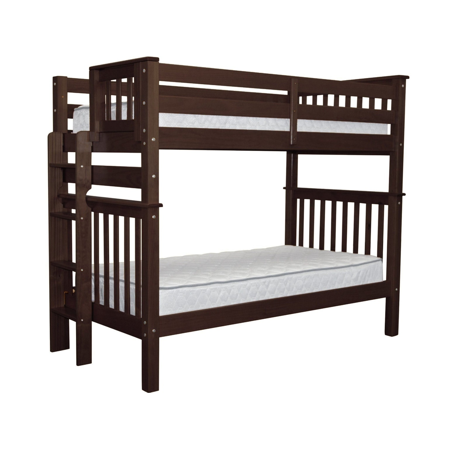 Constructed from stable pine wood with a charming grey finish, this classy and reliable bunk bed is a fantastic solution for roommates and large families. The bunk features a twin over twin construction with an end ladderFeatures:Includes hardwareGrey finishSolid PineAssembly RequiredSale is for bunk bed only (excludes mattresses)69 inches high x 43 1/2 inches wide x 83 1/2 inches longThis product will ship to you in multiple boxes.Assembly Required Free Shipping Over $49.99* Details Taylor & Olive Trillium Tall Twin over Twin Bunk Bed with End Ladder Product Description: Constructed from stable pine wood with a charming grey finish, this classy and reliable bunk bed is a fantastic solution for roommates and large families. The bunk features a twin over twin construction with an end ladder Features: Includes hardware Grey finish Solid Pine Assembly Required Sale is for bunk bed only (excludes mattresses) 69 inches high x 43 1/2 inches wide x 83 1/2 inches long This product will ship to you in multiple boxes. Assembly Required