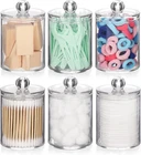 Bathroom Containers - bathroom organizer canisters whit lids are JUST RIGHT for Q-tip, cotton ball, cotton swab, cotton rounds, floss picks, tampon, bath salts, hair tie band, makeup brush, beauty egg, face brush, crayons, candy, pens, clip and more small things Wide Mouth Design - Each qtip holder has a removable lid and a wide mouth, easy to set the Q-Tips perfectly in the dispenser and easy to get them out Waterproof and Moisture-proof - Bathroom jars with lids are sturdy & tight, you keep the apothecary jars in the bathroom and the cotton won't fluff from moisture BETTER DECOR STYLE - Thick clear plastic vanity organizer are good decor elements, modern farmhouse style, very suitable for office and home, restroom, vanity countop, bedroom, kitchen and bathroom decor Bathroom Jars can be used to keep things organized and make it easier to find what you need, 3 pack 10oz, 3 pack 12oz 6 Pack Qtip Holder - 12oz 10oz Plastic Bathroom Containers with Bamboo Lids for Cotton Ball, Cotton Swab, Cotton Round Pads, Floss - Clear Restroom Organizers and Storage Containers (Beige)