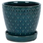 Embossed ceramic planter with a reactive teal glaze for long-lasting beauty. Measures 4.25-inches high and 5-inches in diameter and includes a matching saucer. Look to for a -stop-shopping home for all your floral, garden, gift and seasonal decor needs. For over 75 years has provided a wide range of seasonal designs, garden living, inspirational assortments and collections to help add functional decor to your outdoor spaces. INDOOR/OUTDOOR PLANTERS: Durable, high quality ceramic and glaze finish for long lasting beauty and use; suitable for any room in any home SMALL SIZE: Measures 4.25-inches high and 5-inches in diameter; matching saucer ALL-OVER INDENTED ARROW DESIGN ON EXTERIOR: Reactive teal glaze adds drama and dimension; nature of the process ensures no 2 look exactly alike IDEAL GIFT FOR GREEN THUMBS: Neutral design fits most décor and will accent any room in the home; add a favorite plant for a gift they'll never forget HOME AND GARDEN DÉCOR: Proud to be the leading source for all your home and garden décor for over 75 years - from floral containers, garden accessories whimsical to memorial, seasonal and holiday accents