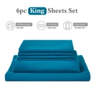 6 Piece Luxury Great Bonus - Teal king sheet set is made of 1800 Series ULTRA SOFT and ULTRA DURABLE 100% Brushed Microfiber,with Exquisite Stitches Workmanship.LASTS!The Biggest BONUS.Very Soft and Breathable.And our king fitted sheet is FULLY ELASTICIZED to ensure a secure fit with DEEP POCKETS (up to 14") to fit todays mattresses!6pc Teal king bed sheets set includes:(1)Flat Sheet 108"x102",(1)Fitted Sheet 78"x80",(4)Pillowcases 20"x40". 5 Star Hotel Sleeping Experience - Teal bed sheet set has Lightweight & breathable construction,provides unparalled comfort! Exquisitely designed with a perfect combination of durability and softness.Luxuriously crafted with superior breathability will keep you warm & cozy in the winter,and cool in the summer.Cooling sheets will let your family sleep comfortably every night and Wake up each morning Full of Energy. -Free & Breathable - Proprietary Weaving Process creates a Tightly Woven Fabric that's softer and more breathable.And our microfiber sheets resistance technology will provide fresh,new look when you put the Teal king sheet sets on your bed.It's best choice for your house-bedroom,guest room,room. Feel The Difference - Our silky soft,most comfortable and luxurious Teal bed sheets king size is resistant,shrink resistant,fade resistant,stain resistant and environmentally friendly:the best choice for your skin.The skin is the largest organ in the body,so treat yourself right with our Luxury deep pocket king sheets to feel the difference . Easy Care & Best Gifts Choice - Machine wash cold,gentle cycle.Tumble dry low.Our king bed set Teal sheets are best choice as gifts for men and women,Valentine's-Mother's-Father's Day and Christmas.NOTICE:In order to obtain sufficient flatness,we recommend that you hang it to dry after washing.