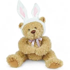 Plush Stuffed Easter Teddy Bear • Brown Bear wearing white bunny ears • Flexible wire in the ears allows you to bend and shape the ears into place • Ear headpiece is tied around the neck with the ribbon, but the bow is attached to the bear's neck and therefore the ear headpiece is not removable • Paws are connected together in front • While seated, bear itself is approximately 9" wide and 8" tall not including ears -- add another 4.5" with ears This is a pre-owned, used item in good condition. No stains, holes, or loose seams.