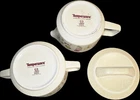 This is a 3 piece set Lenox Sprite Temperware. It appears to be a creamer or gravy serving bowl and a sugar bowl w a lid included. All three are in excellent condition, with no chips or cracks! Temperware is unique as it is made to go from oven to freezer or cold to hot without cracking or breaking! Would be a great addition to any kitchen!
