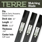 High-quality exact replacement mower blades for Compatible/Replacement for Husqvarna OEM part #s 539101733. Replaces OEM Part Numbers: AYP 539101733; Bobcat 112111-03, 112243-03, 2722543-03, 42180B, 72039B, WM142180B Replaces OEM Part Numbers: Giant Vac 0788; Husqvarna 539101733; Kees 101733 Replaces OEM Part Numbers: Lastec P-128; Ransomes WM142180B; Snapper 1520842, 1-7081, 5020842, 7017081, 7075770, 7075770BZYP, 7075770YP Compatible with: 61" Decks Husqvarna BZ6127, BZ6134, iZ6123, iZ6125, LZ6123, LZ6125, LZ6127, LZ6130, WHF6123, ZTH6123, ZTH6125, ZTH6126, ZTH6127; Bobcat with 61" Decks XM Series replacement for 5020842, 539101733, 112111-03, 112243-03, 2722543-03, 42180B, 72039B, WM142180B, 0788, 101733, P-128, 1520842, 1892324, 7017081, 7075770, 7075770BZYP, 7075770YP. Terre (formerly Phoenix Distribution) is your source for genuine, affordable OEM replacement and general-purpose mechanical motion parts and outdoor power equipment. The quality of our products and our service is at the root of all we do. Length: 21" | Width: 2-1/2" | Thickness: .197" | 5/8" Center Hole | 61 Inch Decks | 3 Pack High Lift Blades Replaces OEM Part Numbers: Scag 48111, 481708, 481712, 48304, A48111, A48304 | Ferris 1520842, 1520842S, A48304 | Husqvarna 539101733 Replaces OEM Part Numbers: Bobcat 112111-03, 112243-03, 2722543-03, 42180B, 72039B, WM142180B | Snapper 1520842, 1-7081, 5020842, 7017081, 7075770, 7075770BZYP, 7075770YP | Hustler 795252, 795252X, 795252Y Replaces OEM Part Numbers: Giant Vac 0788 | Kees 101733 | Lastec P-128, P-246 | Ransomes 42180B | Great Dane D18036, GDU10232 | Bunton 79-117, PC005, PL4207 | Encore 823006 | Honda 72511-VE6-L10 | Lesco 050170, 50256, 51532 Compatible with 61" Decks for the following models: Scag Advantage | Scag Turf Tiger | Scag Wildcat | Scag Walk-Behind | Simplicity Stallion | Simplicity Colt | Ferris 1000Z | Ferris IS1500ZX | Ferris IS2000Z | Ferris IS2500Z | Ferris IS3100Z | Ferris IS4500Z | Ferris IS5100Z | Ferris G1818