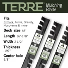 Length: 16-1/8” | Width: 2-1/2” | Thickness: .197” | 5/8” Round Center Hole | 3 Pack Mulching Mower Blades Replaces OEM Part Numbers: Ariens 00273000, 04919100, 04920600, 4919100 | Bobcat 03239, 112111-01, 2722543-01, 32061, 32061A | Exmark 1-323515, 1-403026, 1-403059, 1-403086, 1-403148, 1-520843 Replaces OEM Part Numbers: Ferris 1520843, 1520843S, 20843, 5020843 | Giant Vac 0640 | Gravely 00273000, 04919100 | Husqvarna 539101496 Replaces OEM Part Numbers: Jacobsen 03239, 32061, 390666 | Kees 100340, 483011, 483046 | Lesco 050227, 12111-01 | Simplicity 5020843, 5020843SM | Snapper 03239, 1-7036, 100340, 101366, 32061, 7-6675 | Snapper Pro 5020843, 5020843A Compatible with the following 48 Inch Mower Decks: Ariens Apex CE 48, PM144Z, 48" Side Discharge Deck CE, Zoom 2348, Zoom 2148XL, Zoom 2348XL with Exmark Viking Hydro, Metro Five Speed, Turf Tracer, Metro HP Compatible with the following 48 Inch Mower Decks: Gravely 48" XDZ Side Discharge Mulch Kit, Pro-Turn 148 CE, Pro-Turn 148 SD, PM148Z, GR1548FXP, GR1548FX, HE1748FXP 48 Inch Mower Decks | Husqvarna iZ4817, iZ4821 with 48 Inch Mower Decks