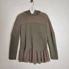 Excellent preowned condition / No flaws. Olive green color Thick stretch knit fabric Long sleeves Hooded 1 chest pocket Peplum / ruffle hem Vented mesh / eyelet panels Fabric content/care instructions in photos Approximate measurements: 18" Armpit to armpit 27" Length Style tags: Solid, Warm, Casual, Athleisure, Contrasting Trim, Neutral, Army Green, Basic, Minimalist, Olive Green, Lounge, Relaxed, Fall Fashion Ships next business day! Please message me with any questions. 438-230302 TSW2