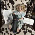 The Danbury Mint Shirley Temple and Dog ‘My Friend Corky’ Porcelain Doll New Brand new in box. Includes care sheet, posing instructions, and certificate of authenticity. Box has water damage and ware from storage, but no damage whatsoever to doll or dog. Vintage 1998 She measured approximately 11” in sitting position.
