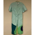 Make a statement in this unique color block jumpsuit! Features a chic mandarin collar, short sleeves, and button-front closure. The mint green base is beautifully complemented by bold geometric color blocking in teal, lime, and navy. Elastic waist provides comfort and definition. Perfect for summer brunches, art gallery visits, or creative workplace environments. The modern design offers both style and comfort. Department: Women Type: One-Piece Color: Multicolor Style: Jumpsuit Fabric Type: Woven Material: 100% Cotton, Cotton Sleeve Length: Short Sleeve Pattern: Colorblock Accents: Button Occasion: Casual, Business, Workwear Number of Pieces: 1 Piece Keywords: color block jumpsuit, mint green jumpsuit, geometric pattern, button front, mandarin collar, short sleeve, elastic waist, retro style, modern fashion, summer jumpsuit, cotton jumpsuit