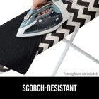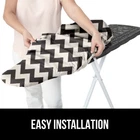 Iron quickly and efficiently with the durable ironing Board Cover! Here are answers to our customers' most frequent questions. WILL THIS IRONING BOARD COVER HELP WITH MY IRONING? Yes, this cover will help you to iron more quickly to get perfect, wrinkle-free clothes in no time! Our cover's material reflects heat and distributes it evenly, helping you to iron quickly and efficiently, time after time. IS THIS COVER LONG-LASTING AND DURABLE? Very! Our ironing board cover includes thick padding and a silicone coating that helps resist staining and burning, helping you to increase the durability and life of your cover and ironing board. CAN I WASH THIS COVER? Yes. Spot clean the ironing board cover as needed. Do not machine wash. WHAT SIZE IS THIS COVER? Our cover measures 15" x 54" and is designed to fit boards of the same size. The stretchy material of the cover stretches seamlessly for a perfect fit over most standard-sized ironing boards. WHAT IF I AM NOT HAPPY WITH MY PURCHASE If you are not happy for any reason (even after Amazon return window), please reach out and we will be happy to assist you with a no hassle replacement or refund! HEAT, SCORCH, AND STAIN RESISTANT: heavy duty ironing board cover with extra thick padding is heat and scorch resistant up to 400 degrees; water and stain resistant for long lasting use REFLECTIVE SILICONE COATED: the silicone surface of the cover is reflective; while other materials absorb heat, silicone reflects the heat of the iron to help achieve wrinkle free clothes in a fraction of the time; plus, irons glide effortlessly for easy ironing every time STAYS IN PLACE ON BOARDS: strong bungee like elastic at the edges of the cover helps to keep it in place on standard sized boards; plus, two underside hook and loop fastener straps for additional protection EXTRA THICK PADDING: cover is extra thick and provides a durable barrier between clothing and the ironing board, so that the mesh from the board will not transfer to your clothing FITS MOST BOARDS: the cover features a nose pocket design and measures 15 by 54 inches, so it’s designed to fit standard sized ironing boards; the elasticized edges create the look of a custom cover IRONING BOARD NOT INCLUDED
