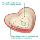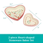 Designed for sweet moments like Valentine's Day, anniversaries or a regular day, the Pioneer Woman 2-piece Heart-shaped Stoneware Baker Set adds a touch of romance to your creative style of baking. It elevates the both the presentation and performance of your baking game so that each slice is as warm as a loving hug. Stoneware craftsmanship offers excellent heat retention and even baking to ensure that crusts are crisp and fillings cook thoroughly. It features an enamel finish for nonstick baking to help with easy food release and cleanup. No crumb is left behind! The heart-shaped design of each dish is an added visual treat as it lands on a beautiful spread of meals and place setttings. The spacious design accommodates a variety of meals, from hearty casseroles and baked desserts. Make your signature pie filling and pour it to the brim to treat your guests and satisfy their cravings. Nestable design saves space in any cabinet or storage. Enjoy the convenience of this baker as it seamlessly transitions from oven to table. Sturdy construction allows for easy handling, while the stylish design elevates your dining experience. Whether you’re hosting a family gathering, preparing a potluck dish, or simply enjoying a cozy dinner at home, these heart-shaped bakers can double as a serving dish. Safe to put in the dishwasher, microwave and oven, their stoneware construction holds up well over time, resisting stains, odors and scratches after multiple use. Meet Ree: Ree Drummond is a NY Times Best Selling Author, TV personality, social media phenom, and the woman behind the popular Pioneer Woman lifestyle blog that started it all. She's also a lover of butter, basset hounds, Ethel Merman, her hunky, cowboy husband Ladd, and their four kids. Her casual country style and delicious recipes have made her a go-to for all things cooking and entertaining. Two heart-shaped stoneware bakers. Measures 9.7 x 8.3 inches and 7 x 6 inches. Stoneware construction offers even baking and browning Charming floral details and vibrant exterior finish add a pop of color to any kitchen or table Twined edges embrace the beautiful heart shape of each baker Nestable design saves space for easy storage Dishwasher, microwave and oven safe up to 450°F