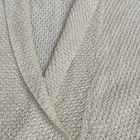 Pre-owned Shawl Sweater Top by Theory. Creme off white in color, with a silver detail weaved within the knit. Size L in women. Measurements: Pit 2 Pit: 30 inches Width at waist ( sweater bottom) 22 inches Length from shoulder to bottom hem: 22 inches Good pre-worn condition. Overall Clean, with no major stains or marks on the sweater. Cable knit weave is in good condition, no holes or snags. all of the seams are in good condition, no fraying thread. buttons are attached and functional. Review all photos for more details on tops condition. Beautiful detail in the collar, blazer like neckline, and three chunky y2k 90's buttons for a bottom closure, batwing sweater style. Shoulder drop sleeves for an oversized boxy crop look that is great for business casual, holiday and new years outfits, or a lovely layer over a dress. Made of a Linen Cotton Blend, however there is a very heavy weight to the garment. Much like a wool sweater. See tag for fabric content details. Retailed $268