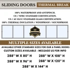 Upgrade your space with our Premium Thermal Break Aluminum Sliding Patio Door, measuring 288" x 96" (24' x 8'). Engineered for maximum durability and thermal efficiency, this heavy-duty 6-panel door features a sleek black powder-coated finish, ensuring long-lasting corrosion resistance. With a robust 2.2mm aluminum frame and double tempered glazing enhanced with Argon gas, enjoy exceptional insulation and noise reduction (30 dB). Certified for winds up to 4500 Pa, it's designed for extreme weather conditions. Choose custom colors and sizes tailored to your needs. Experience unbeatable quality and performanceâÂÂorder your custom sliding door today! Free delivery across the USA. PRODUCT FEATURES PRODUCT FEATURES Upgrade your space with our Premium Thermal Break Aluminum Sliding Patio Door, measuring 288" x 96" (24' x 8'). Engineered for maximum durability and thermal efficiency, this heavy-duty 6-panel door features a sleek black powder-coated finish, ensuring long-lasting corrosion resistance. With a robust 2.2mm aluminum frame and double tempered glazing enhanced with Argon gas, enjoy exceptional insulation and noise reduction (30 dB). Certified for winds up to 4500 Pa, it's designed for extreme weather conditions. Choose custom colors and sizes tailored to your needs. Experience unbeatable quality and performanceâorder your custom sliding door today! Free delivery across the USA. Premium Thermal Break Aluminum Sliding Glass Door Brand New - Upgrade 2025 Model Year Custom Colors 288" x 80" | 24' x 6.7' DEALERS - CONTRACTORS & WHOLESALERS WANTED Lowest Price In The USA Guaranteed FREE DELIVERY IN THE USA ALL DOORS ARE NRFC - IGCC & EU CE APPROVED ( MAKE SURE THE DOOR YOU CHOOSE IS APPROVED TO BE INSTALLED IN THE USA, ALOT OF DOORS ARE NOT!) PICK YOUR COLOR - ALL DOORS ARE CUSTOM MADE ( SEE ORDER INFO BELOW) NEED A DIFFERENT SIZE? OR HOW MANY PANEL IT HAS We offer a variety of sliding door configurations to fit any space. Choose from 2-door, 3-door, 4-door, 5-door, 6-door, 7-door, or 8-door setups, depending on the size you need. Frame Options: Regular Frame (This Listing) Skinny Frame (Available in Our eBay Store – Contact Us for More Info) Other Available Door Sizes (eBay Store): ✔ 2-Panel Doors: 96x80, 80x80, 96x96, 96x108, 108x108, 120x96, 120x120 ✔ 3-Panel Doors: 144x80, 144x96, 144x108, 144x120, 144x144 ✔ 4-Panel Doors: 192x80, 192x96, 192x108, 192x120, 192x144, 240x80, 240x96, 240x108, 240x120, 240x144, 288x96, 288x108, 288x120, 288x144 ✔ 6-Panel Doors: 288x80, 288x96, 288x108, 288x120, 288x144, 360x80, 360x96, 360x108, 360x120, 360x144 💡 Need a custom size? No problem! All orders are custom, so if you don’t see the size you need, check out our eBay store or contact us—we can create any size to fit your space! Heavy-Duty Exterior Sliding Door | French Slider | 3-Track, 6-Panel System 288" x 80" | 24' x 6.7' Upgrade your space with our high-performance Thermal Break Aluminum Sliding Glass Door , a top-tier choice for modern home and commercial applications. Engineered for maximum durability, thermal efficiency, and superior wind resistance , this heavy-duty exterior sliding door combines sleek aesthetics with cutting-edge functionality. Product Overview Profile Material: 6063-T5 Aluminum Alloy (2.2mm thick for unmatched strength) Frame Depth: 217mm | 3 Tracks, 6 Panels Frame Finish: Black Powder-Coated for a sleek, corrosion-resistant look Glass Type: 5+27A+5mm Double Tempered Glazing with Argon Gas Fill Tracks: SUS304 Stainless Steel for long-lasting smooth operation Package: Includes fully enclosed wooden crate for maximum protection Key Features & Benefits 1. Unmatched Strength & Durability ✔ 2.2mm thick aluminum frame —far superior to standard market options. ✔ SUS304 Stainless Steel tracks ensure smooth, rust-resistant sliding for years. ✔ Heavy-duty locking core with key double door system for enhanced security. 2. Superior Thermal Efficiency ✔ Thermal Break Technology prevents heat transfer, keeping indoor temperatures stable. ✔ 5+27A+5mm Double Tempered Glass with Argon Gas Fill —argon is 6 times denser than air , enhancing insulation. ✔ Hidden drainage system and three-seal design provide maximum waterproofing. 3. Extreme Weather & Wind Resistance ✔ Certified for high wind loads up to 4500 Pa (4.5 kPa) — 5x stronger than most doors rated at only 800 Pa. ✔ Waterproof & airtight sealing —designed for all climates, from coastal storms to extreme cold. ✔ Hurricane-rated for safety and protection against extreme weather conditions (not Miami-Dade rated). 4. Noise Reduction & Security ✔ 30 dB Sound Insulation —ensuring peace and quiet inside your home. ✔ Six-point locking system with anti-theft flyscreen for added security. ✔ Impact-resistant double-tempered glass —built to last and resist damage. 5. Modern, Space-Saving Design ✔ Seamless, smooth sliding operation with heavy-duty hardware . ✔ Maximizes natural light while reducing energy costs . ✔ Custom sizing available to fit any project. Performance Ratings Air Permeability: 4.5 m³/m·h Water Tightness: TS EN 12208, 300 Pa Wind Load Resistance: TS EN 12210, 4500 Pa (Far superior to the industry standard B2 rating of 800 Pa) Thermal Insulation: Uw: 2.3 W/m².K U-Factor: 0.29 & SHGC: 0.23 Customization Options We offer fully custom-sized doors to fit your exact needs. Whether you need a specific width, height, or frame color , our doors can be tailored to your residential, commercial, or luxury project . ✔ Choose from multiple frame colors ✔ Custom glass options available ✔ Global shipping available 📞 For bulk orders or contractor discounts, contact us for a custom quote! Order Process & Lead Time ✔ Custom Manufacturing – All doors are made-to-order for 2025 production. ✔ Lead Time: 10-12 weeks (may vary based on location and custom options). ✔ Confirmation Process: A team member will contact you to confirm dimensions, color, and glass options . ✔ 