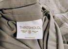 Elevate your bedroom with the Threshold King Size Duvet Cover, featuring a dark, sage green and white color palette with contemporary embroidered stripes. Crafted from 100% cotton, this rectangular duvet cover measures 82 inches in length and 98 inches in width, ensuring a comfortable and snug fit for king-sized beds. Designed with both style and ease of care in mind, it comes with a convenient button closure and is machine washable, making it a practical choice for everyday use. Whether you're refreshing your space or gifting it to a loved one, this duvet cover brings a touch of comfort and sophistication to any bedroom. This is a dark, sage green and is more green than the photos show Duvet Cover King size - 98 x 82 inches Green White embroidered stripes Some little snags on the embroidery, see photo #5