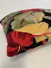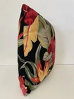 This is a gorgeous vintage bark cloth Hawaiian Hibiscus throw pillow in vibrant colors of red, yellow and black.