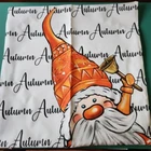 1 pillow cover, shows a gnome with an orange hat and a bell - Black writing which says "Autumn" as a background pattern on white cover. 18x18 inches. New. Pillow cover only- Pillow NOT included.