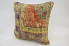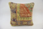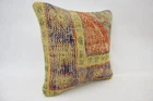 Throw Pillow Covers, Turkish Kilim Pillow, 16"x16" Yellow Pillow Case