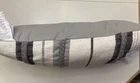 Add a touch of bohemian style to your living space with this Better Homes & Gardens throw pillow. The grey and white striped pattern and tassel accents give it a chic and trendy look. The cotton blend material provides a soft and comfortable feel, while the rope trim adds a touch of texture and detail. This 21 x 11 inch rectangular pillow is perfect for use in the living room, bedroom, or guest room. Spot cleaning only is recommended for care instructions. Made in India, this throw pillow is a high-quality addition to any home decor.