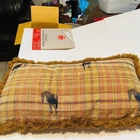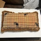 See pics to know the most detail of this item. This throw pillow is perfect for any lounge or living space with its rustic farmhouse and cottage core vibes. The plaid pattern in brown gives a cozy and inviting feel, while the fringe adds a touch of texture. The horse subject adds a touch of equestrian elegance to any couch or armchair. This throw pillow is a great addition to any ranchcore or farmhousecore aesthetic. Its versatile design makes it suitable for any color scheme or style. Its quality craftsmanship ensures durability and long-lasting use.