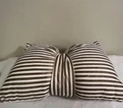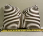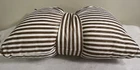 Add a touch of cuteness to your decor with this striped bow-shaped throw pillow. The gold and white stripes give it a charming appeal that's perfect for any room in your home. Whether you're looking for a decorative accent for your office, bedroom, or living room, this throw pillow is sure to impress. Crafted with an unknown fill material, this throw pillow is designed for indoor use only. It's a great addition to any home decor and is perfect for those who love cute and cozy accents. Get your hands on this stylish throw pillow today and add a touch of warmth to your home. Good Condition. Please see Photos for Measurements. Thank you for Looking. Smoke free.