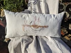 Hand embroidered, white Rustic 100 % linen, heavy weight at 7.1oz/yd2. Tassels are handmade with 100% cotton floss. DMC 100% cotton embroidery floss in neutral colors were used for this simple design. It's supposed to resemble the fallen petals of a Japanese cherry tree( Sakura) in the fall. This throw pillow would make a unique gift for different occasions. Every pillow is carefully designed by me and embroidered by hand with a lot of love and patience. ❤ Stiches used, French knots, satin stitch and straight stitch. Sewing machine only used for the seams and zipper. Dimensions: 23.60inX 12.20in Don't forget to follow my shop. Thank you for your visit. ❤ "Carpe Diem" Sakura blossoms actually fall in late March to early April in Japan, this is my version of what it would look like in Autumn. Fabric Care Instructions: Please note that some of the darker or more vibrant shades will have some residual dye run off or bleeding. It is important that you launder or treat like colors with like colors so that you do not compromise the integrity of any other colors, fabrics or garments during the launder process. I also suggest that if you are combining one or more of these types of colors with lighter colors that you pre-wash the linens separately and once the item is completed do not launder again, but Dry Clean. FABRIC CARE Machine wash cold. Gentle cycle. Only non-chlorine. Bleach if needed. Tumble dry low.