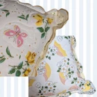 Throw pillow flowers April showers Butterfly scalloped edge handmade decorative adorable handmade throw pillows yellow/white cloud look fabric back measurements are approximate, lying flat Gently used, good condition, *with faint mark on back of one pillow as shown in photo* One pillow may be a bit discolored (unconfirmed) smoke free home tags: April showers, flowers, Butterfly, umbrella, handmade, decorative, whimsical, fairy, cottage, child's room, prairie, nature, accent, quilted, fairytale