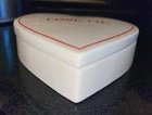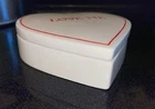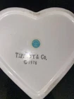 Vintage Tiffany & co trinket dish. There is a small chip on the inside of the lid and a scratch on the lid above the V in love. It is about 4 inches long, 4 inches wide and 1 1/8 inch thick. Please see pictures for condition and details. Thank you so much for looking!
