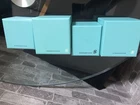 These empty Tiffany ring cases are perfect for jewelry storage or gifting! They arrived in great condition—just a little dust, as described. The black and blue boxes look elegant, and the set of four is a fantastic deal. No major flaws, just some minor wear. Super happy with this purchase! Would definitely buy again.