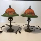 Very good preowned condition Measurements are in pictures Will be packed very carefully Floral glass shade Ornate metal base very detailed Approximately 14” H Please feel free to reach out with any questions