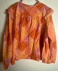 Time & True Size 22 Light Blue Pink Floral Flutter Sleeve Top